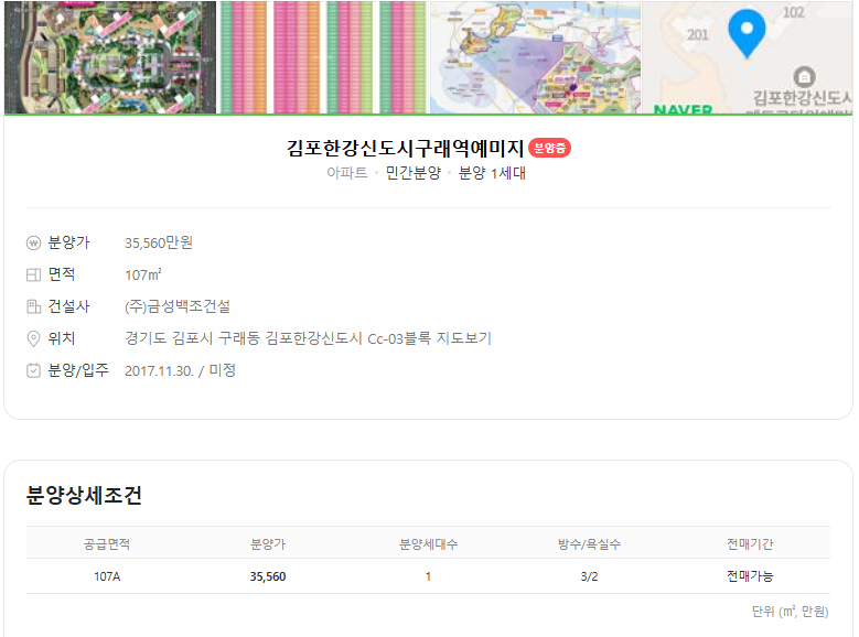- 분양가: 3억5560만원(2017년 최초 분양가)