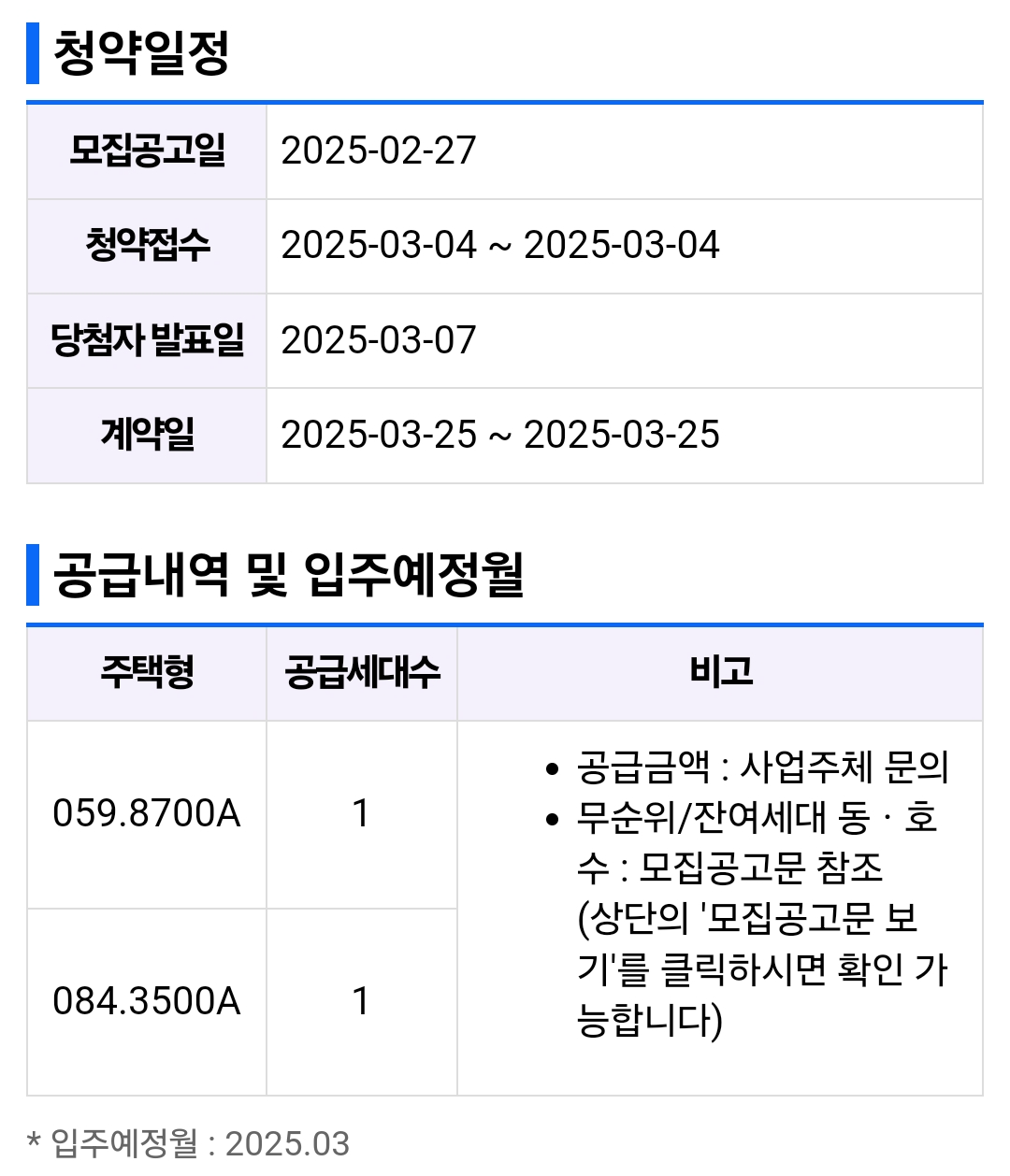 - 신청 기간: 청약 신청은 2025년 3월 25일부터 3월 25일까지 진행되며, 이후 추첨을 통해 당첨자를 발표합니다.